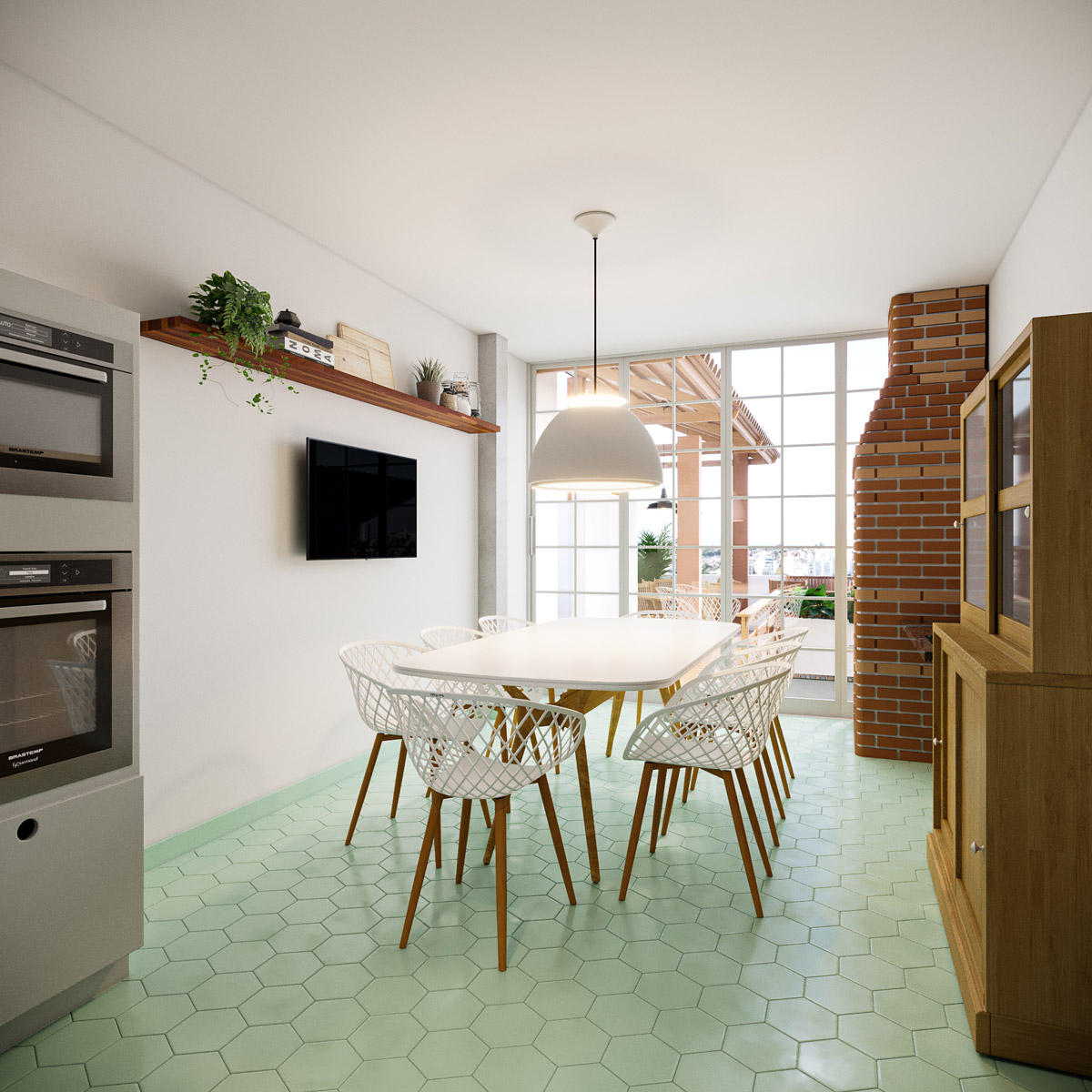 O coração desse projeto é a cozinha. Originalmente pequena, a cozinha foi ampliada ocupando o espaço que pertencia a lavanderia e criamos uma nova e ampla sala de jantar integrada a uma nova área de lazer. Destaque para as novas portas de aço e vidro que proporcionaram abundante luz e ventilação natural além de garantirem a valorização do horizonte, que antes eram ocultado por uma parede.